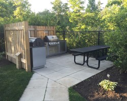The Barbeque area is located on the ground floor at the back of the building. It can be accessed through the rear exit or from the stairs leading to the patio on the south side of the building. It is equipped with two natural gas fired grills and a stainless steel & granite kitchen for your convenience. A picnic table is also available for you to prepare your meal or eat at. A full set of BBQ tools can be borrowed from the Concierge.