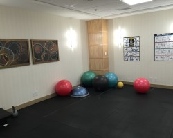 A TV with cable access and high speed WIFI are provided for the enjoyment of those using the room. The Fitness Room is furnished with up to date equipment, including a Hoist universal gym, treadmills, elliptical trainer, rowing machine and exercise bike. A set of dumb bells and kettle bells along with other small training equipment can be found in the room.